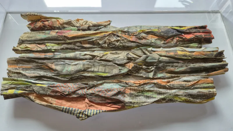 These three-dimensional landscapes invite close inspection, revealing depth, strata and shifting perspectives. The surface is formed from interlocking newspaper fragments, creating both a unified composition and a collection of miniature visual studies.